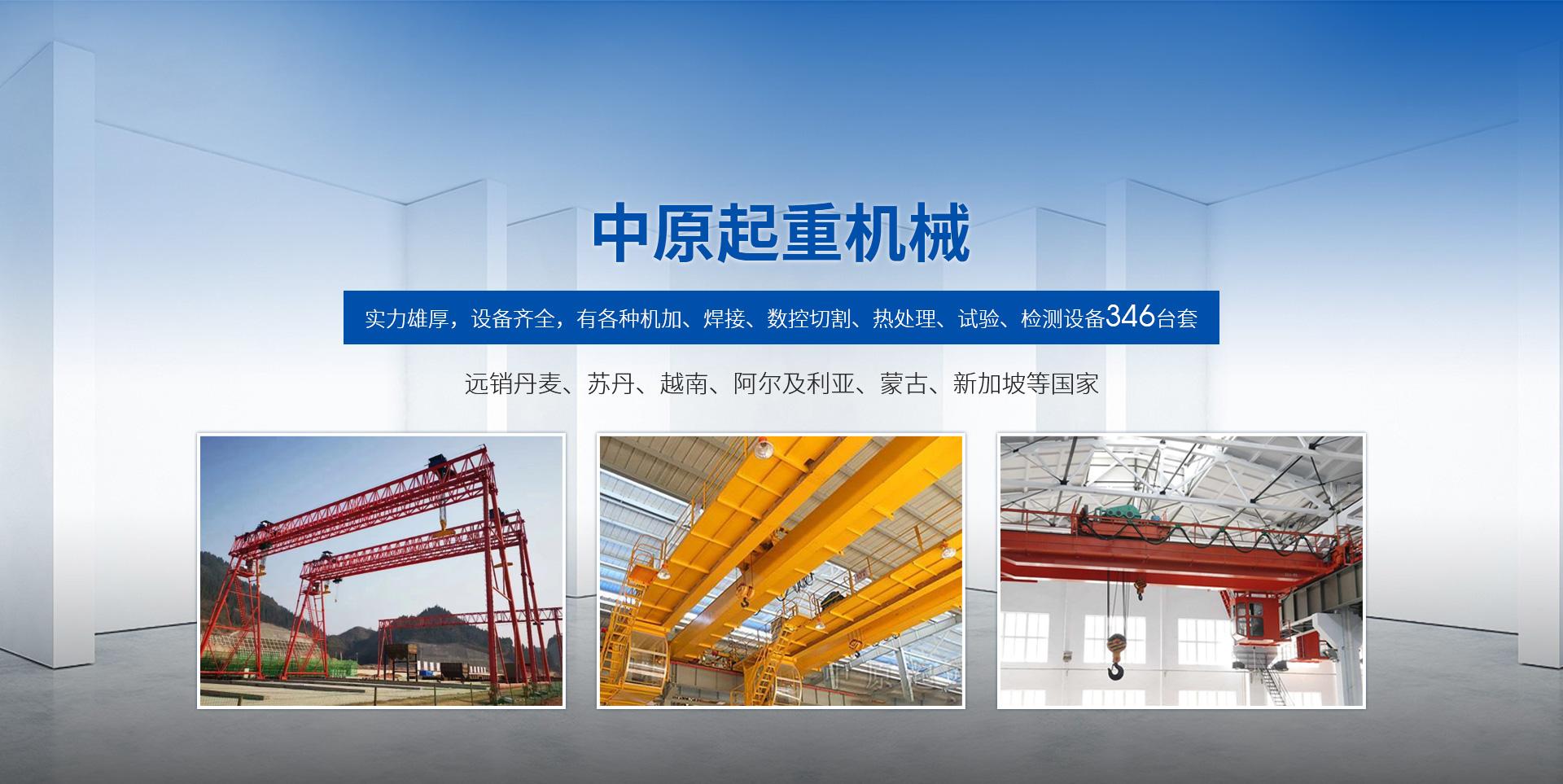 新鄉(xiāng)市中原起重機(jī)械有限公司成立于2000年,地處中原,輻射全國(guó)28個(gè)省市自治區(qū),設(shè)外埠經(jīng)銷(xiāo)處、辦事處268個(gè)。產(chǎn)品行銷(xiāo)工礦、建材、化工、冶金、電力、交通、鐵路、油田、港口等各個(gè)行業(yè)。遠(yuǎn)銷(xiāo)丹麥、蘇丹、越南、阿爾及利亞、蒙古、新加坡等國(guó)家?! 」緦?shí)力雄厚,設(shè)備齊全,有各種機(jī)加、焊接、數(shù)控切割、熱處理、試驗(yàn)、檢測(cè)設(shè)備7臺(tái);有機(jī)加工、熱處理、單、雙梁橋門(mén)機(jī)生產(chǎn)、檢測(cè)、安裝等9個(gè)車(chē)間,研究中心、運(yùn)輸公司、安裝維修服務(wù)公司等機(jī)構(gòu),?  主要產(chǎn)品有:LD型1~20噸電動(dòng)單梁起重機(jī)系列產(chǎn)品;5~600噸通用橋式、門(mén)式、冶金、上旋轉(zhuǎn)下旋轉(zhuǎn)電磁吊、絕緣、抓斗、防爆起重機(jī)系列產(chǎn)品;LH3~100噸葫蘆雙梁系列產(chǎn)品;MH5~32噸葫蘆門(mén)式系列產(chǎn)品;0.5~40噸CD1、MD1鋼絲繩電葫蘆系列產(chǎn)品;HS1型0.5~20噸手動(dòng)葫蘆系列產(chǎn)品;0.5~10噸環(huán)鏈電動(dòng)葫蘆系列;0.5~40噸彎道電動(dòng)葫蘆系列產(chǎn)品;裝卸橋、造船門(mén)機(jī)、架橋機(jī)、鑄造吊和水電大噸位起重機(jī)系列產(chǎn)品?! 」窘⒘藦?qiáng)有力的質(zhì)量保證體系和生產(chǎn)過(guò)程的質(zhì)量控制系統(tǒng),嚴(yán)格執(zhí)行國(guó)家設(shè)計(jì)、生產(chǎn)標(biāo)準(zhǔn),有嚴(yán)格的生產(chǎn)工藝過(guò)程和標(biāo)準(zhǔn),嚴(yán)格的檢驗(yàn)、檢測(cè)標(biāo)準(zhǔn)和手段。